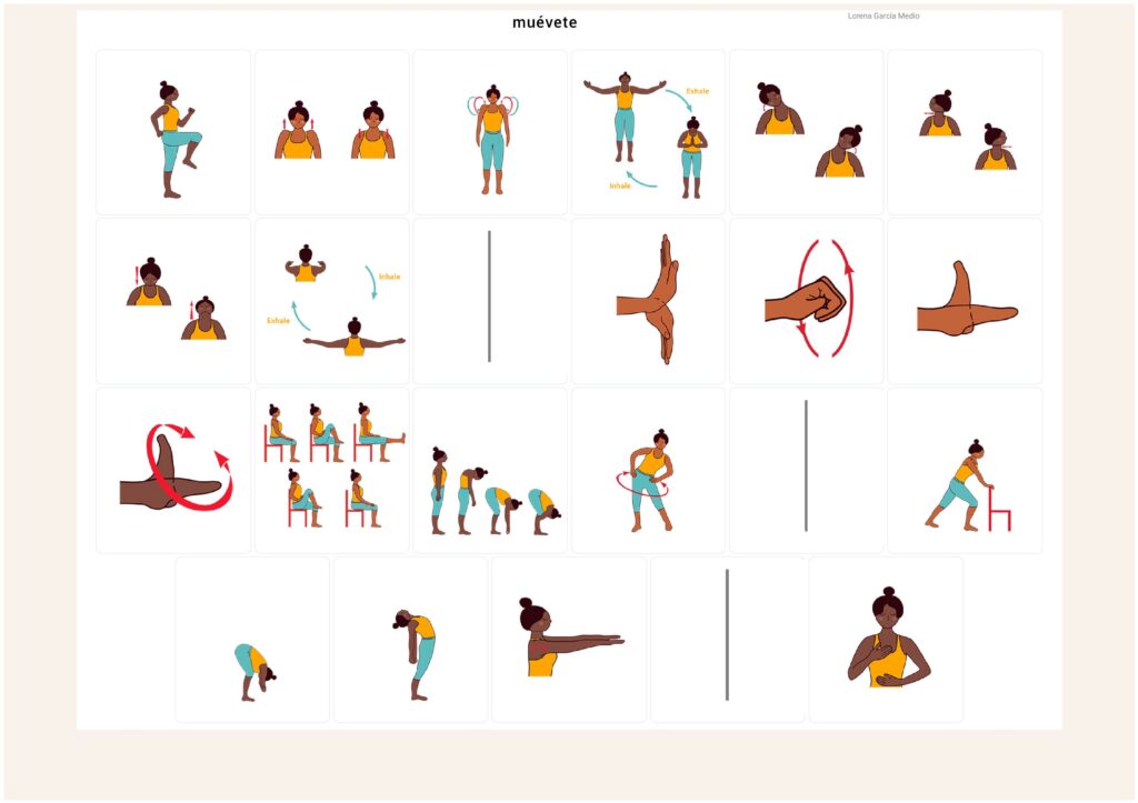 Apta para hacer en casa, sin material, de pie o sentados.